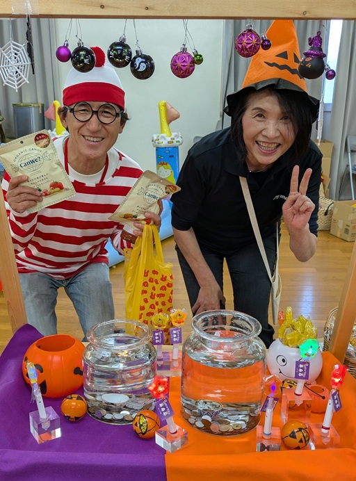 まいあめハロウィンにおじゃましました。立派になった教え子やまったく以前と変わらないお父さんお母さん。たくさんの親子連れや子どもたちで大盛り上がり。