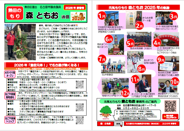 ますます名古屋・熱田が活気づく年になるよう、また私たちの暮らしの一層の向上を目指し、元気もりもりがんばります。